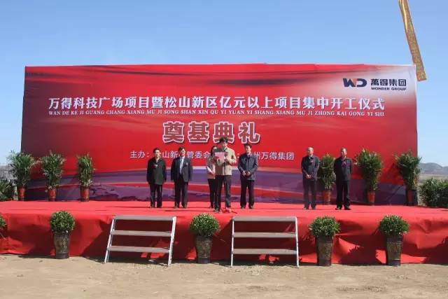 2016年4月5日,萬(wàn)得科技廣場(chǎng)項(xiàng)目暨松山新區(qū)億元以上項(xiàng)目集中開(kāi)工奠基儀式在錦州市松山新區(qū)萬(wàn)得科技廣場(chǎng)項(xiàng)目地塊內(nèi)舉行。錦州市市委常委總工會(huì)主席趙璟、錦州市人民政府副市長(zhǎng)胡偉、錦州市政府相關(guān)部門(mén)領(lǐng)導(dǎo)、松山新區(qū)黨工委各級(jí)領(lǐng)導(dǎo)、萬(wàn)得集團(tuán)總裁曾慶東等領(lǐng)導(dǎo)出席奠基儀式,共同見(jiàn)證這一歷史時(shí)刻。