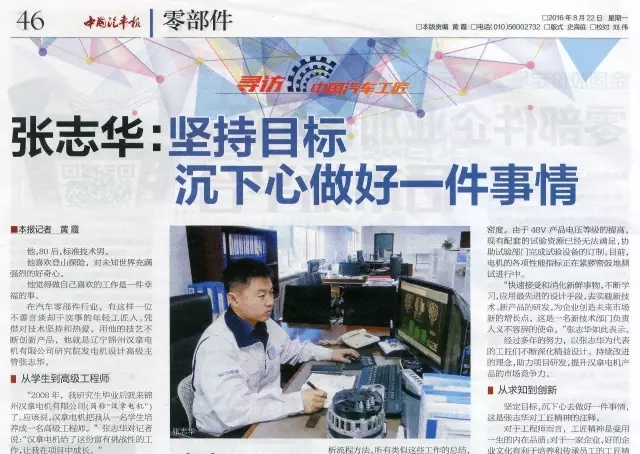 “2008年,我研究生畢業(yè)后就來錦州漢拿電機有限公司(簡稱“漢拿電機”)了。應(yīng)該說,漢拿電機把我從一名學生培養(yǎng)成一名高級工程師。”張志華對記者說:“漢拿電機給了這份富有挑戰(zhàn)性的工作,讓我在項目中成長。”