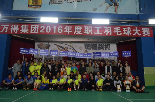 10月22日,萬得集團(tuán) “2016年度職工羽毛球大賽”在曼哈頓奧體中心羽毛球館揮拍開賽。經(jīng)過一天58場鏖戰(zhàn),最終錦州漢拿電機(jī)有限公司代表隊(duì)獲得團(tuán)體冠軍,萬得汽車電器電子科技有限公司的劉紅獲得女子單打冠軍。集團(tuán)財(cái)務(wù)總監(jiān)趙燕、集團(tuán)工會(huì)主席肖嘉到場為選手加油助威并為獲獎(jiǎng)選手頒獎(jiǎng)。
