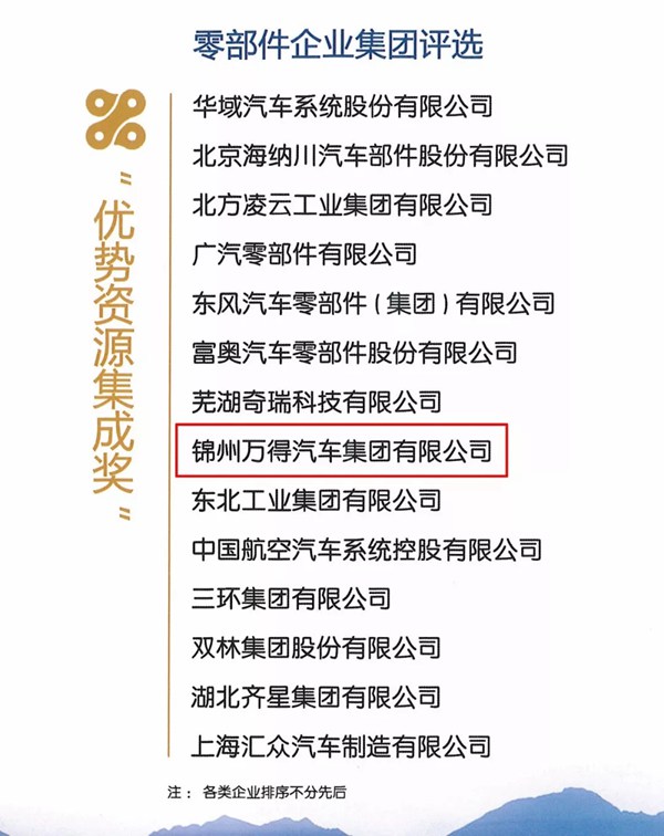 5月30日,《中國(guó)汽車(chē)零部件產(chǎn)業(yè)發(fā)展研究》成果發(fā)布會(huì)暨“強(qiáng)國(guó)之基—中國(guó)優(yōu)秀汽車(chē)零部件企業(yè)”頒獎(jiǎng)典禮在西安舉行,會(huì)上根據(jù)國(guó)內(nèi)汽車(chē)零部件行業(yè)企業(yè)發(fā)展特點(diǎn)將8個(gè)細(xì)分產(chǎn)業(yè)類型劃分為10個(gè)獎(jiǎng)項(xiàng),揭曉了汽車(chē)零部件產(chǎn)業(yè)優(yōu)秀企業(yè)名單。萬(wàn)得集團(tuán)作為國(guó)內(nèi)汽車(chē)零部件一線品牌,融合優(yōu)勢(shì)資源,突破傳統(tǒng)細(xì)分產(chǎn)業(yè)界限,拓展上下游全產(chǎn)業(yè)鏈條,全面開(kāi)展零部件平臺(tái)化建設(shè),促進(jìn)零部件產(chǎn)業(yè)持續(xù)縱深發(fā)展,一舉榮獲汽車(chē)零部件“優(yōu)勢(shì)資源集成獎(jiǎng)”。