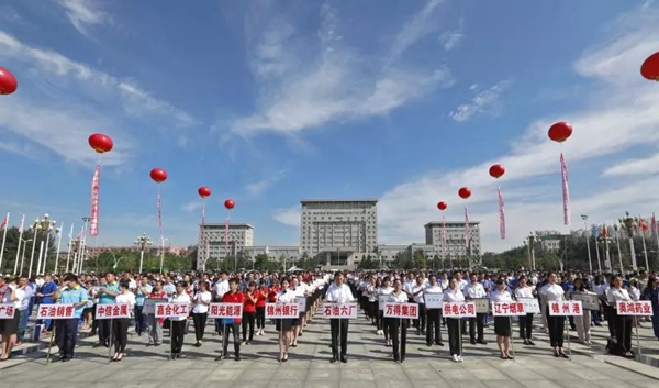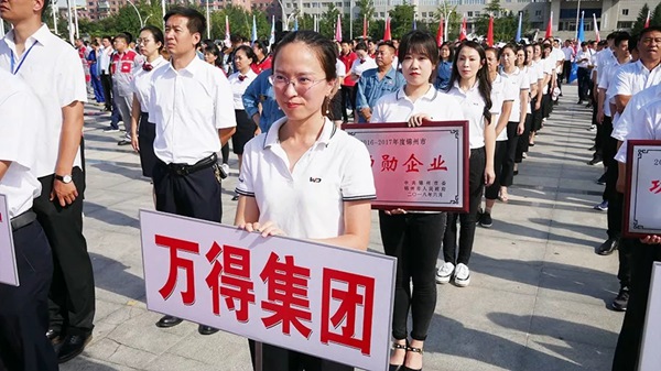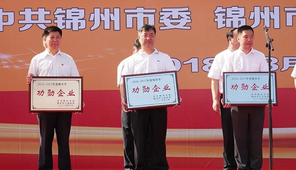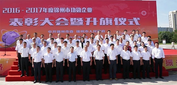 8月17日,市府廣場彩球高懸、彩旗飄揚,“深入實施工業強市戰略、促進錦州振興發展”的標語迎風招展。“2016-2017年度錦州市功勛企業表彰大會暨升旗儀式”在這里隆重舉行,全市共有50戶骨干企業受表彰。萬得集團以年營業收入、交納稅金、社會貢獻等綜合指標位列前三甲的業績名列其中,這是繼2015年度獲獎后第二次獲此殊榮。集團董事長兼總裁曾慶東代表集團從市領導手中接過“功勛企業”牌匾。