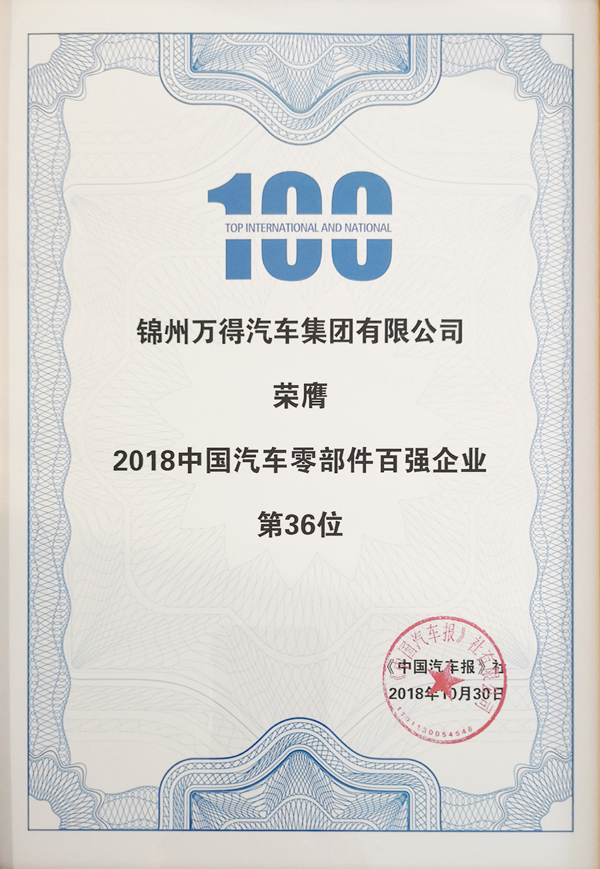 10月30日,《中國汽車報》社主辦的2018年國際汽車零部件企業百強和國內汽車零部件企業百強發布會在北京舉行,在會上公布的“2018中國汽車零部件企業百強榜”榜單上,錦州萬得集團繼2017年上榜后,以69.59億元的銷售收入再次登榜,位列第36位。